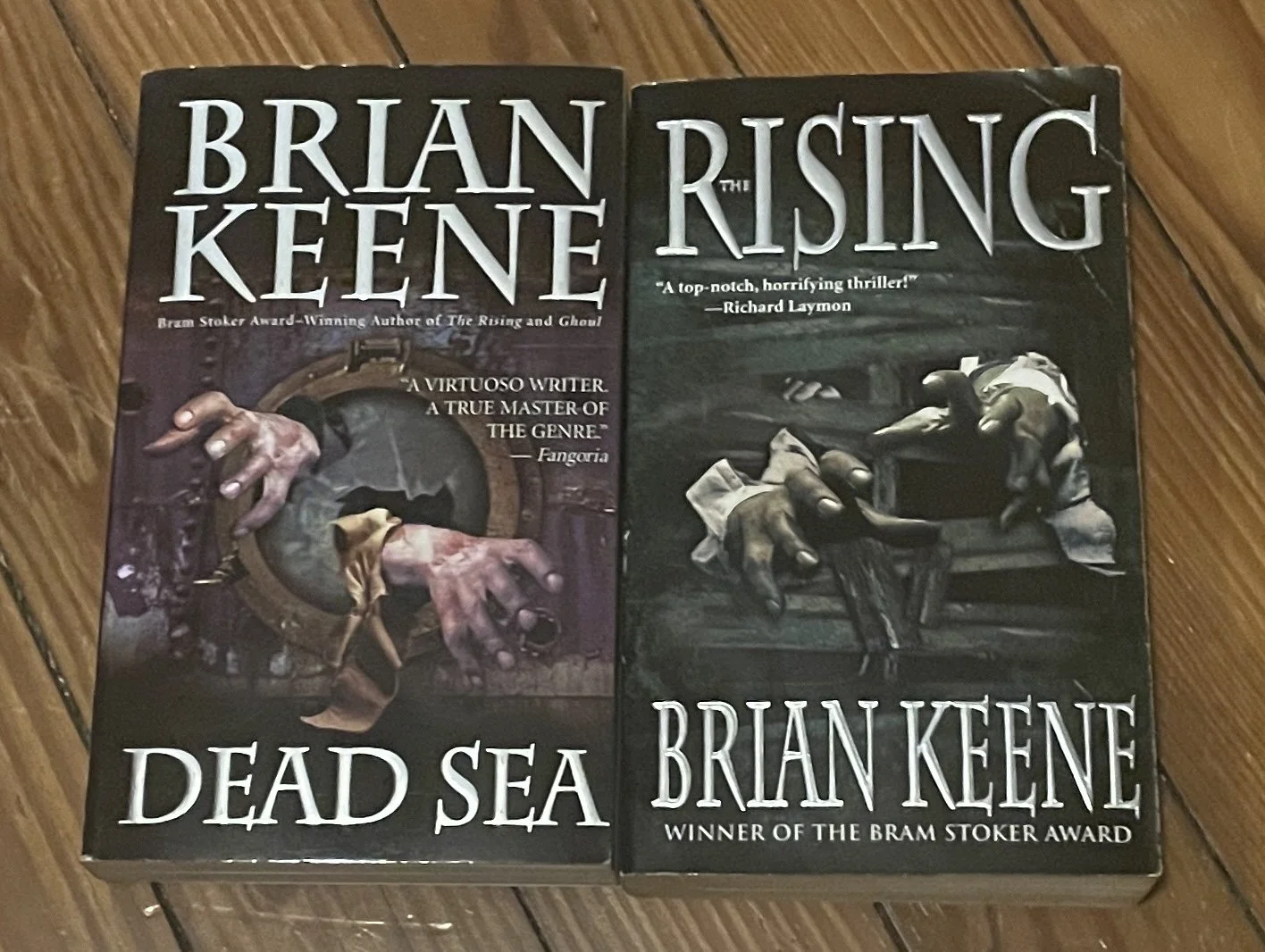 Because they were being sold as “Signed” and when I looked at the signature in THE RISING, I saw that it wasn’t mine. It wasn’t even a good copy of mine. The one in DEAD SEA was a little better. They got my ‘B’ right. But still not mine.